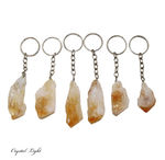 A Natural rough Citrine point which has been fitted to a keychain. SOME POINTS CONTAIN CHIPS.