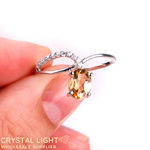 This Sterling Silver Citrine Ring has a beautiful band of cubic zirconia gemstones leading up to a faceted Citrine Gem.