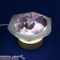 Selenite Hexagon bowl comes with LED Stand (Cool tone, Small) & 181g of Amethyst Tumbles. Weight is combined. Dimensions are for shipping purposes only.