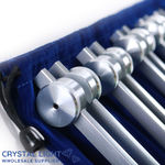 Set also includes a polishing cloth, a navy velvet drawstring case and mallet.
