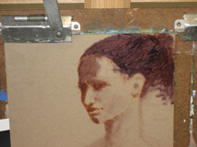 The colors used on this particular portrait were: Titanium White, Naples Yellow, Yellow Ochre, Cadmium Red Light, Alizarin, Burnt Sienna, Dioxazine Purple and Phthalo Blue.