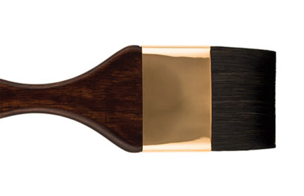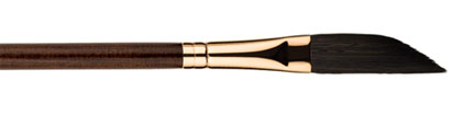 As the name implies, the hairs are laid out in a flat formation, with a straight end to the filament. This allows you to paint a square edged mark like windows and doors, for example. They come to a sharp chisel edge when charged with paint and if used vertically, they’re ideal for making thin, straight lines.